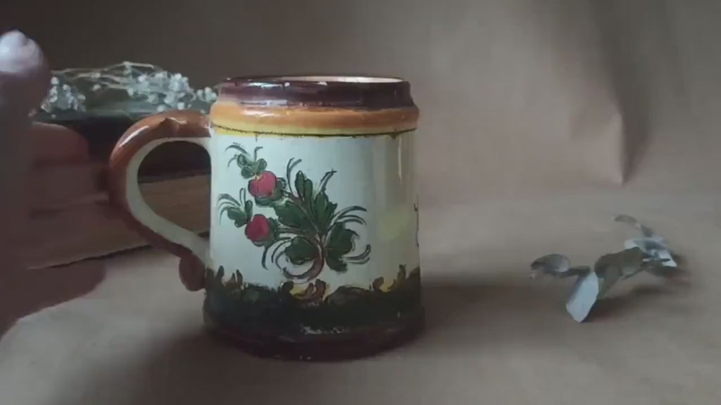 Charming vintage ceramic beer stein made in Germany, decorated with a traditional Bavarian floral pattern. This compact tankard blends heritage craftsmanship with a soft, cottage-style aesthetic, perfect for women who love cozy gatherings, Oktoberfest spirit, and collectible European drinkware with authentic character.