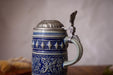 Vintage Bavarian Beer Stein Blue Ceramic German Mug with Pewter Lid