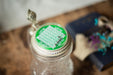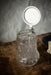 • Materials: pressed glass, metal lid