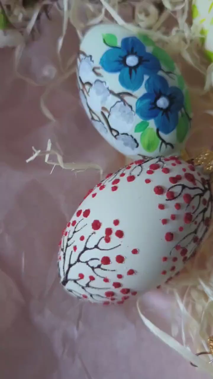 Bring the beauty of spring to your home with these exquisite hand-painted glass Easter egg ornaments. Each egg features a delicate floral design, adding an elegant and botanical touch to your Easter decor. Perfect for hanging on an Easter tree, displaying in a decorative bowl, or gifting to someone special.