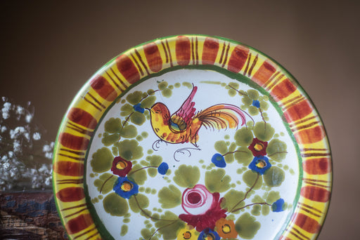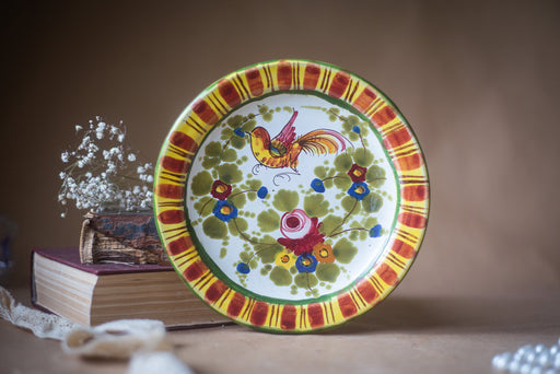 View full detailsRustic hand painted ceramic plate with flower and bird ornament, vintage, Germany