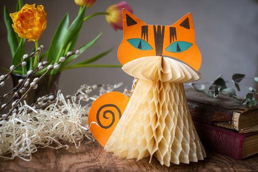 View full detailsTissue paper cat, cute hanging accent, honeycomb paper decorations, vintage spring decor