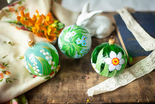 Bring a touch of spring to your home with these stunning hand-painted glass Easter baubles. Each ornament features delicate floral designs, making ...
