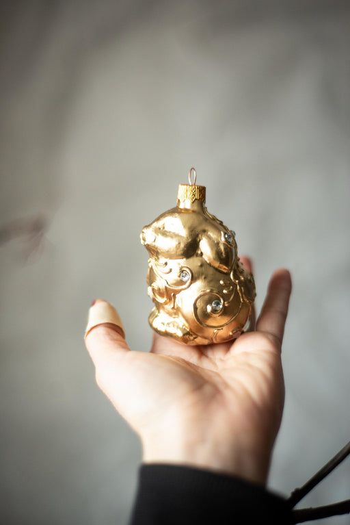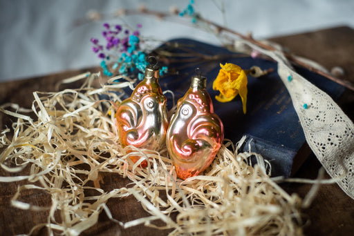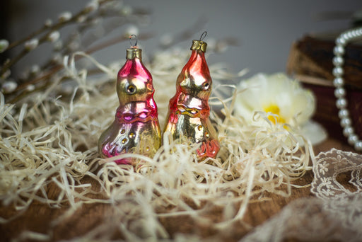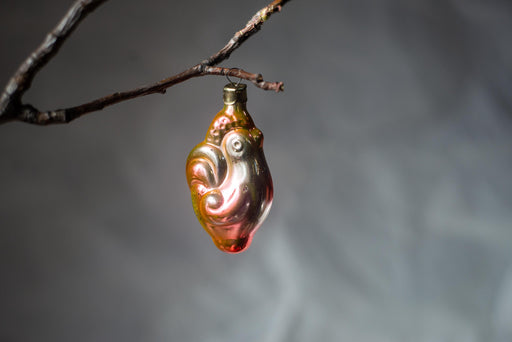 A delicate 1970s vintage glass chick ornament, shimmering in soft metallic tones and full of nostalgic spring charm. Perfect for Easter trees, seas...