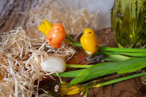 Delicate vintage glass birds from the 1970s, each chick clipped and ready for your Easter tree or spring branches. Their soft pastel and metallic f...