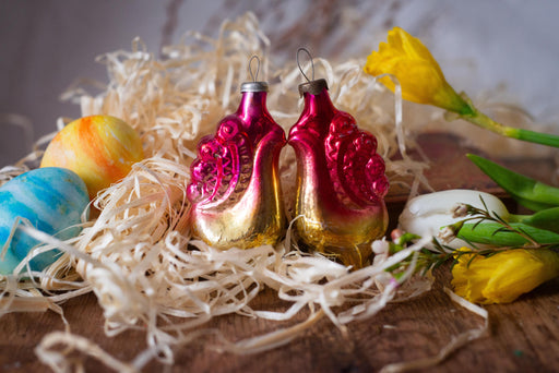 Authentic vintage glass rooster ornament designed for Easter tree décor and farmhouse spring styling. Rich red and gold tones reflect beautifully i...