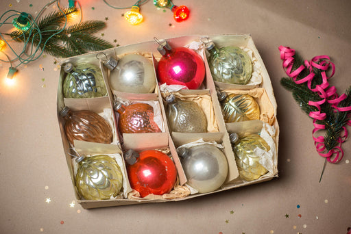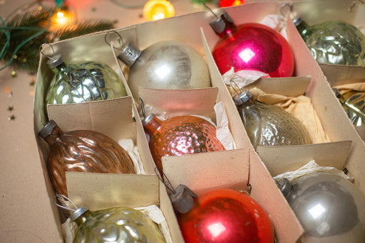 View full detailsVintage Mercury Glass Christmas Ornaments Set of 12, 1970s Boxed Baubles Decor