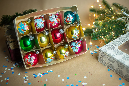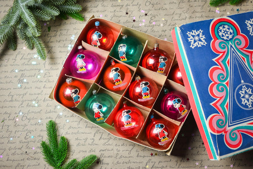 View full detailsSet of 12 glass vintage Christmas ornaments in original box, retro Cartoon characters, Xmas tree hanging kids ornaments
