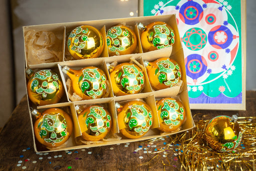 View full detailsGold Vintage Christmas Ornaments Set of 12, Glass Baubles 1970s, Retro Tree Decor