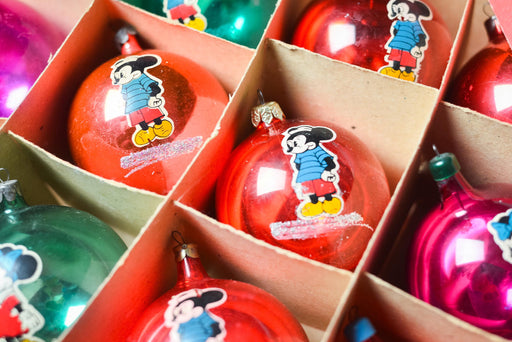 View full detailsVintage Mickey Mouse Glass Xmas Ornaments Set, Retro Disney Christmas Tree Decor in Original Box